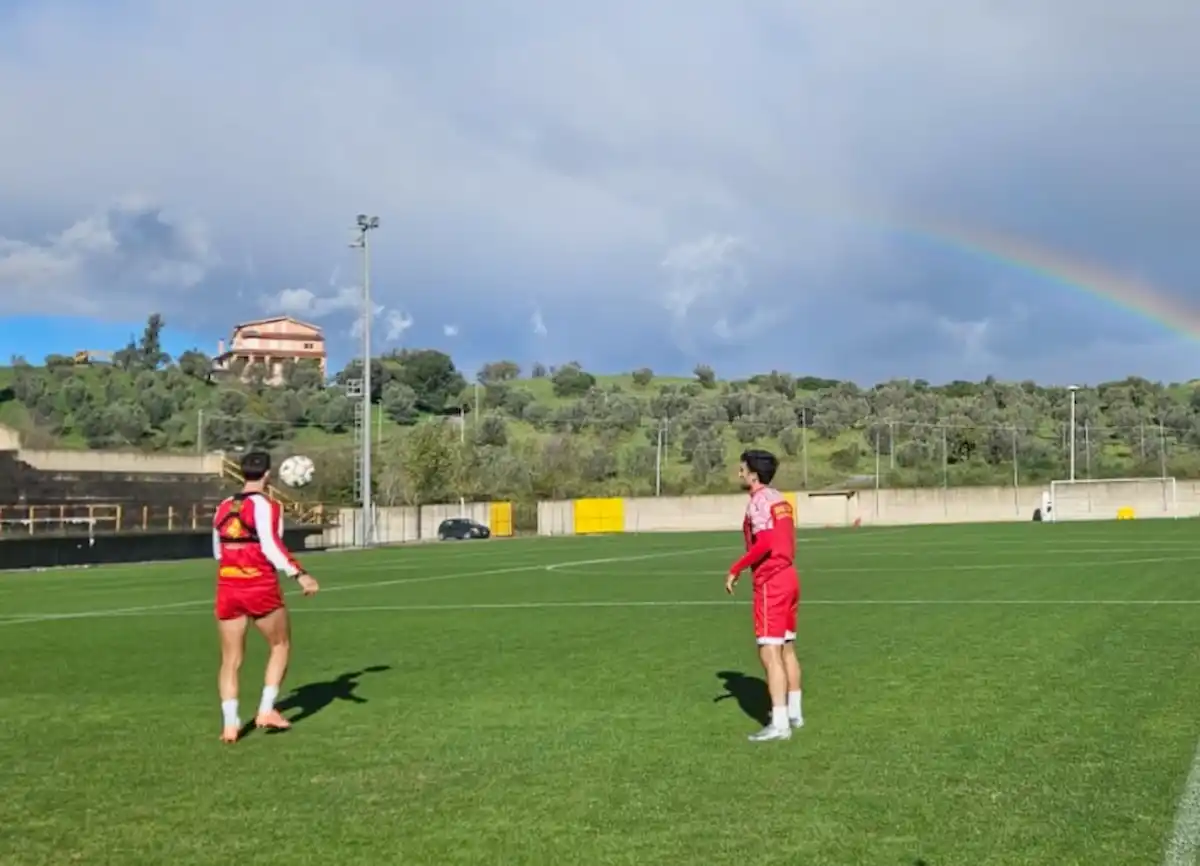 La speranza, in casa giallorossa, assume i colori vividi e incoraggianti di un arcobaleno. La storia Instagram pubblicata pochi minuti fa da Tommaso Cassandro non è una semplice fotografia, ma un messaggio chiaro e potente sul recupero di due pedine fondamentali del progetto tecnico: il difensore si è mostrato palleggiare sul campo di allenamento di San Floro in compagnia di Federico Di Francesco.