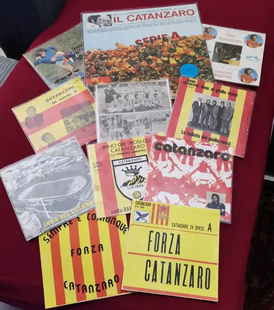 Una passione che nasce dall’amore per la squadra del cuore, fin da quando da bambino andava a vedere le partite del Catanzaro. Saranno esposti diversi vinili 45 giri, di cui il più antico risale alla prima storica promozione del Catanzaro in serie A, prima squadra della Calabria a raggiungere la massima serie oltre 50 anni fa. E via via con le altre promozioni, fino ad arrivare al Cd più recente in occasione della promozione in serie C nell’anno 2011/12. “Con i dovuti scongiuri – commenta Timpano – la speranza è che un nuovo disco del tifo giallorosso possa essere inciso in occasione di una prossima promozione in serie A”.