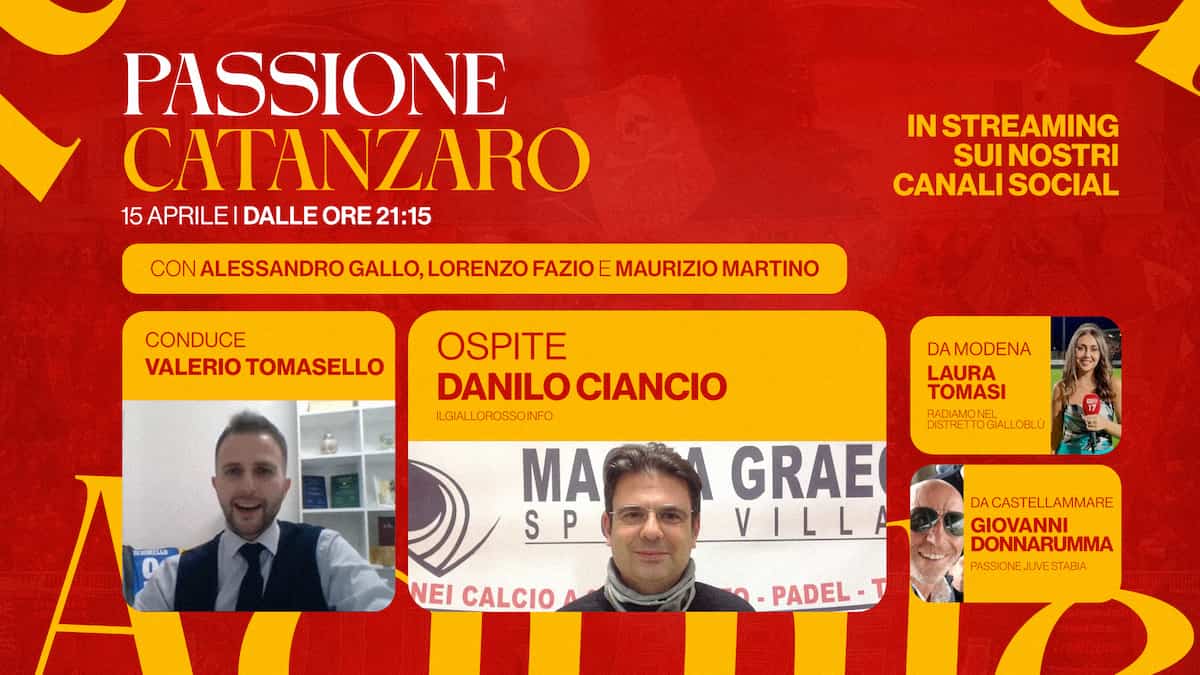 Sarà possibile seguirci a partire dalle 21.15 in diretta sui canali social Youtube, Facebook e Instagram di PassioneCatanzaro.