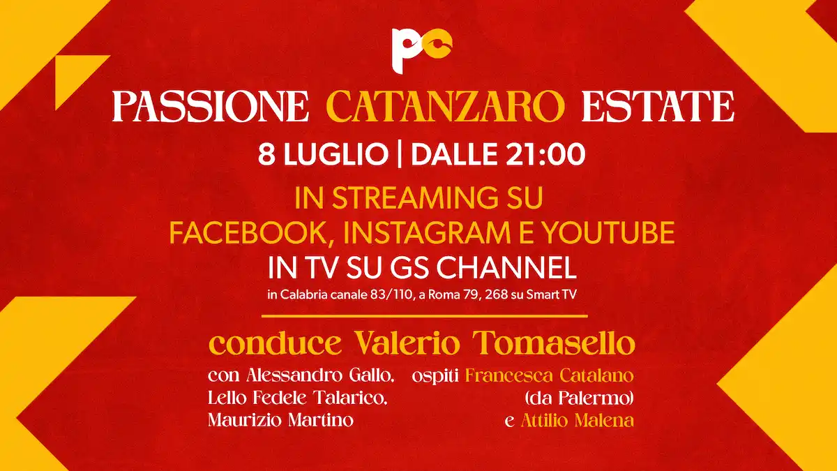 Sarà possibile seguirci a partire dalle 21 in diretta sull’emittente TV GS Channel e sui canali social Youtube, Facebook e Instagram di PassioneCatanzaro.