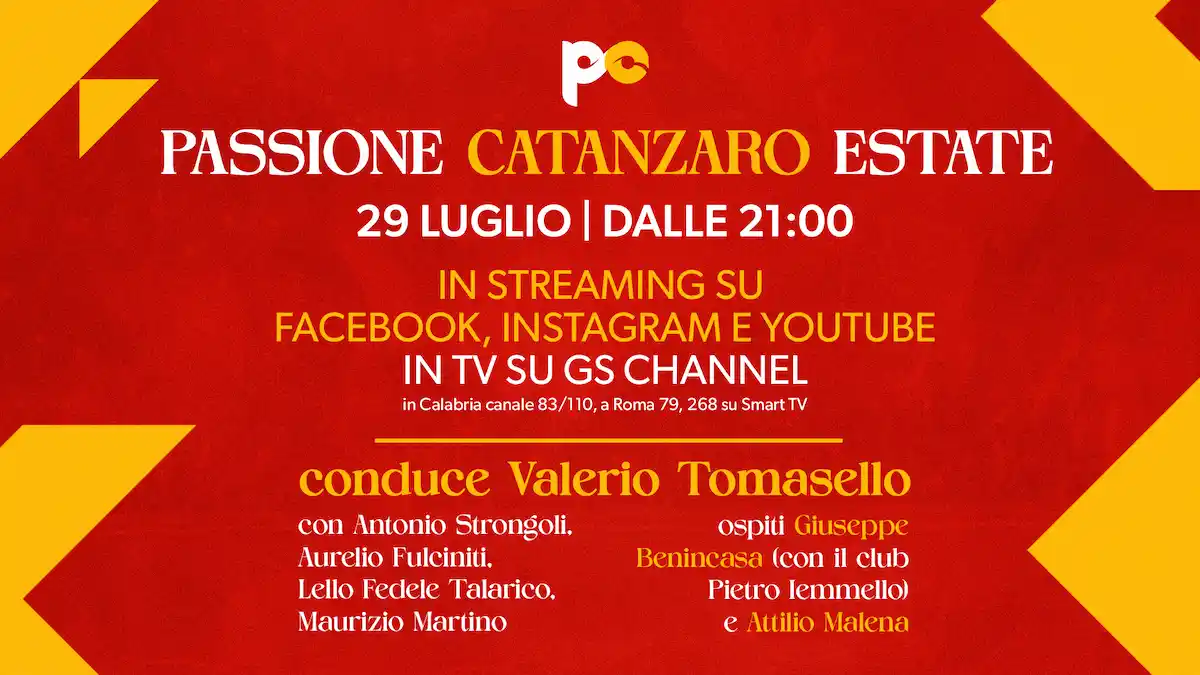Sarà possibile seguirci a partire dalle 21 in diretta sull’emittente TV GS Channel e sui canali social Youtube, Facebook e Instagram di PassioneCatanzaro.
