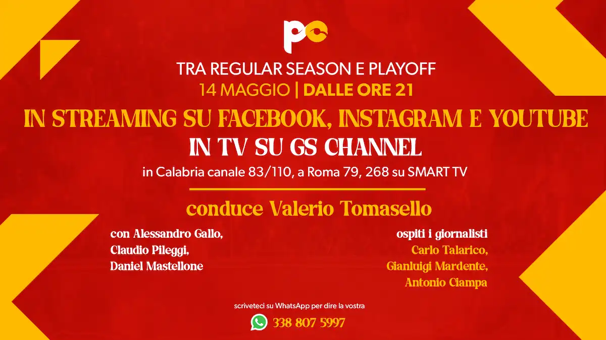 Sarà possibile seguirci a partire dalle 21 in diretta sull’emittente TV GS Channel e sui canali social Youtube, Facebook e Instagram di PassioneCatanzaro.