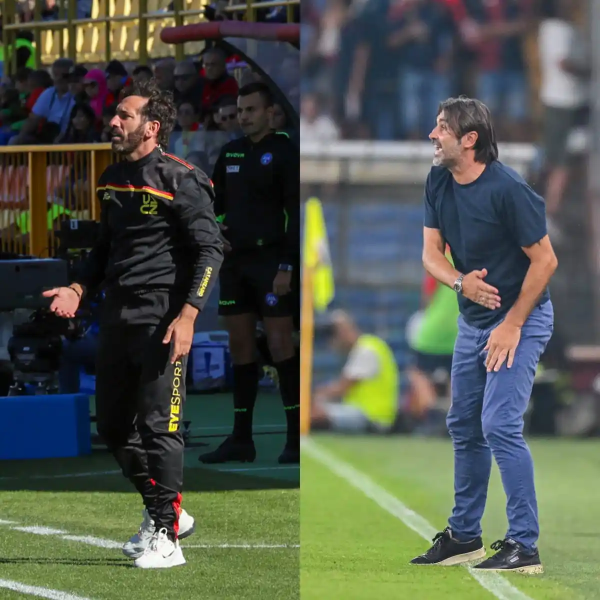 Entrambi i tecnici hanno avuto una carriera interessante anche come giocatori, calcando campi importanti in Serie A e B. Caserta, cresciuto calcisticamente in Sicilia, ha militato in squadre di prestigio come Catania e Palermo in Serie A, e ha successivamente costruito una solida carriera da allenatore con due promozioni dalla Serie C alla Serie B: la prima con la Juve Stabia nel 2019 e la seconda con il Perugia nel 2021.