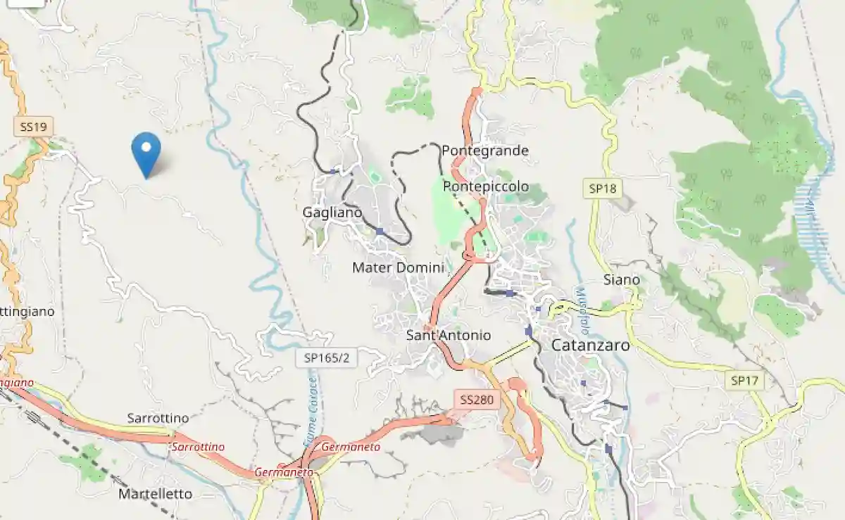 • Ore 19:15: Scossa di magnitudo 2.5 con epicentro 1 km a sud di Tiriolo (CZ) a una profondità di 10 km.