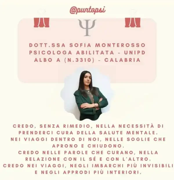La Dott.ssa Sofia Monterosso [@puntopsi], professionista che opera in Calabria, incarna dunque l’impegno a trasformare il supporto psicologico in un percorso attivo e consapevole, guidato dalla convinzione che la cura del benessere mentale sia la base per ogni nuova partenza.