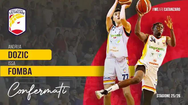 Andrija Dozic, ala forte di cm.198, con Issa Fomba, centro di cm.200, saranno anche per la prossima stagione due pedine importanti del roster Academy di B e, soprattutto, di Under 19 di Eccellenza.