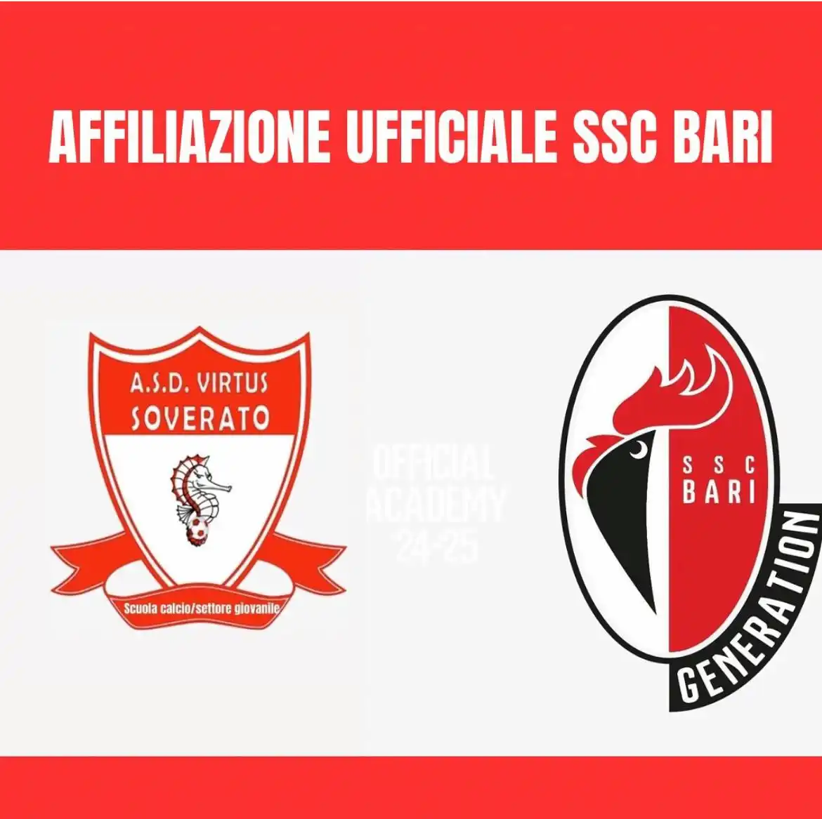 “E’ Motivo di orgoglio e grande soddisfazione per tutta la nostra realtà – esordisce la presidentessa del sodalizio biancorosso soveratese – il “Progetto Bari” rappresenta una straordinaria opportunità di crescita per i nostri ragazzi, che potranno beneficiare del coordinamento diretto da parte dei responsabili tecnici del club biancorosso; saranno previsti, durante tutto l’arco della stagione, per i nostri allenatori momenti formativi dedicati, con il supporto dello staff tecnico del Bari, per garantire uno sviluppo sempre più professionale delle competenze di gioco ed interne; l’ affiliazione prevede una collaborazione attiva e costante con la sopracitata realta’ professionsta: saranno numerose le occasioni in cui i nostri giovani atleti verranno osservati dai tecnici del Bari, non mancheranno momenti di confronto e crescita, come amichevoli, raduni e altre iniziative che si svolgeranno direttamente presso la sede del club pugliese, insieme ai pari età biancorossi”.