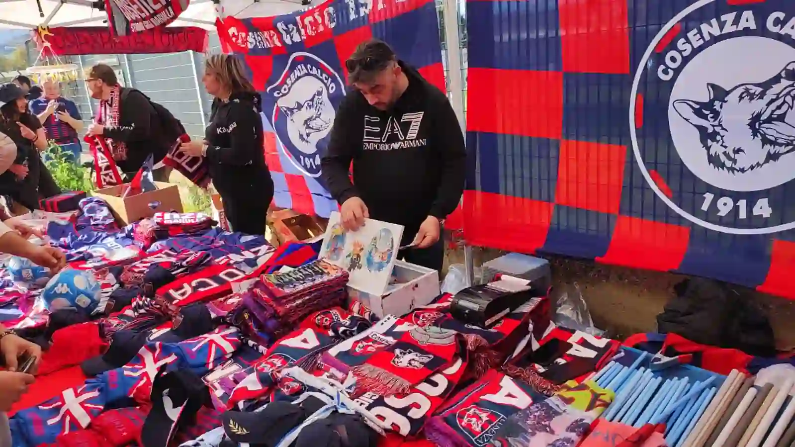 Non mancano, però, le polemiche e le provocazioni contro il Catanzaro, il rivale di sempre. Sulle bancarelle fuori dallo stadio, vengono vendute sciarpe e bandiere con scritte provocatorie come “Catanzaro Mer..”, “Odio Catanzaro” e slogan simili. Questi oggetti testimoniano la rivalità accesa tra le due tifoserie e alimentano ulteriormente l’atmosfera di competizione che avvolge il derby.