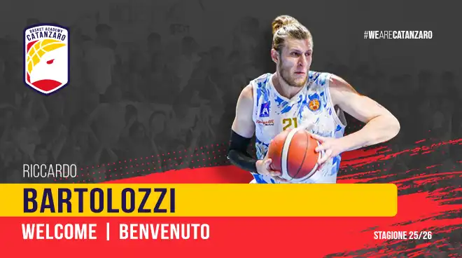 Arriva a Catanzaro Riccardo Bartolozzi, centro-ala di cm.205, che ha chiuso la stagione disputando a Cagliari la finale per la B1. Statistiche con numeri importanti, quali 10,5 rimbalzi media ed un congruo 40% di realizzazione al tiro da tre.