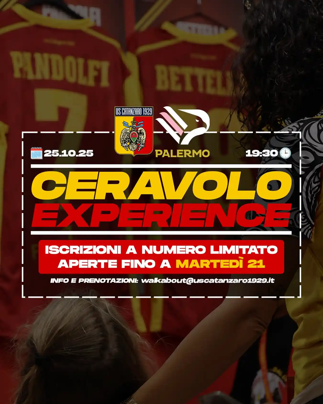 Le iscrizioni sono a numero limitato e aperte fino al 21 ottobre, a pochi giorni dalla sfida contro il Palermo di Filippo Inzaghi. Per partecipare, basta scrivere all’indirizzo dedicato walkabout@uscatanzaro1929.it, dove lo staff fornirà tutte le informazioni necessarie per vivere un pomeriggio da vero protagonista giallorosso.​