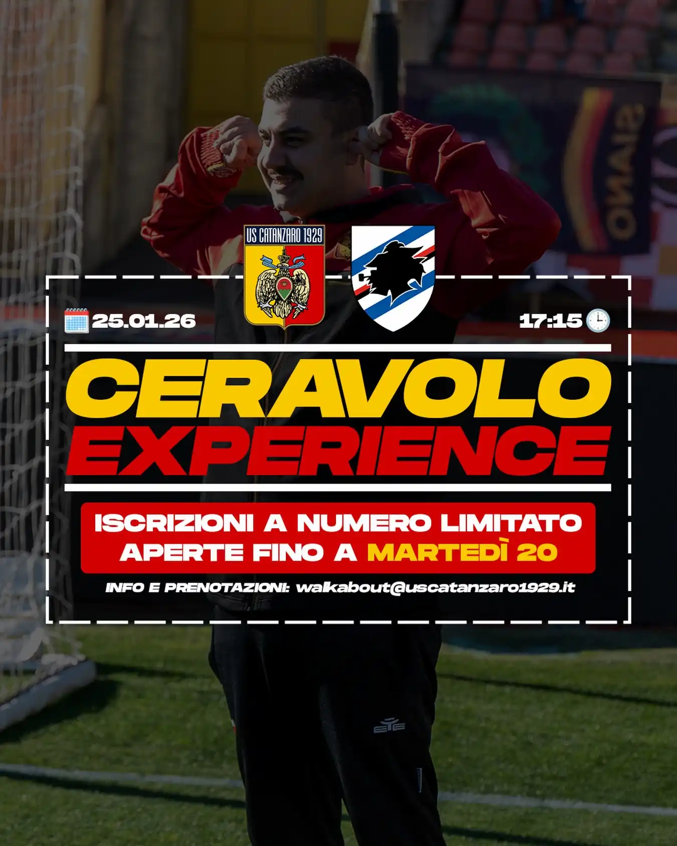 Vivere l’attesa della partita non dagli spalti, ma dal cuore pulsante dello stadio. In occasione del big match contro la Sampdoria, in programma domenica 25 gennaio 2026 alle ore 17:15, l’US Catanzaro ripropone la “Ceravolo Experience”, l’iniziativa che permette ai tifosi di scoprire i segreti della casa delle Aquile.