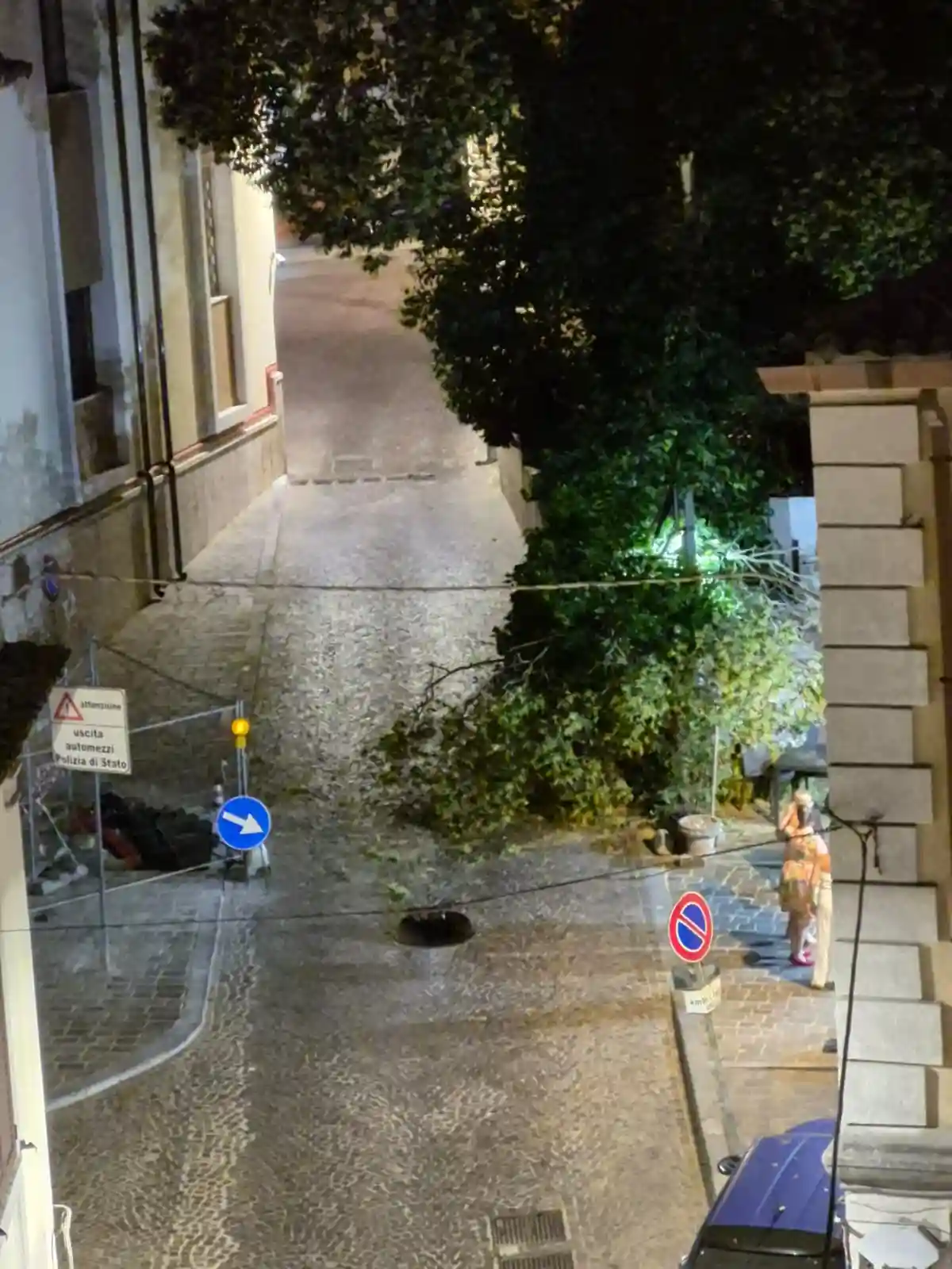La zona è stata immediatamente isolata e si attende ora l’arrivo dei Vigili del Fuoco, allertati per verificare la sicurezza dell’area e per procedere con la rimozione dei tronchi e dei rami pericolanti.