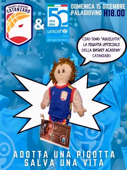 Protagonista della giornata sarà “Aquilotta”, la “pigotta” ufficiale della Basket Academy Catanzaro. Difatti, il team giallorosso del presidente Bianchi entra nell’universo Unicef, proseguendo il percorso virtuoso avviato con il “Progetto Academy” che prevede una stretta correlazione tra basket e socialità.