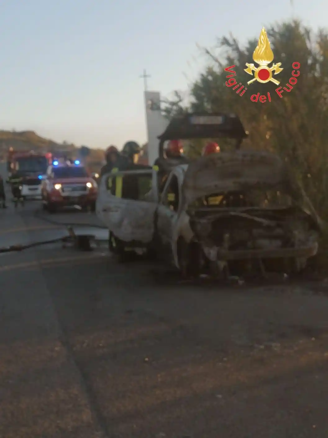 Squadra dei vigili del fuoco del Comando di Catanzaro distaccamento di Sellia Marina è intervenuta questo pomeriggio nel quartiere marinaro di Giovino, zona sud di Catanzaro, per i incendio autovettura sul cavalcavia in prossimità del Commissariato di Polizia.