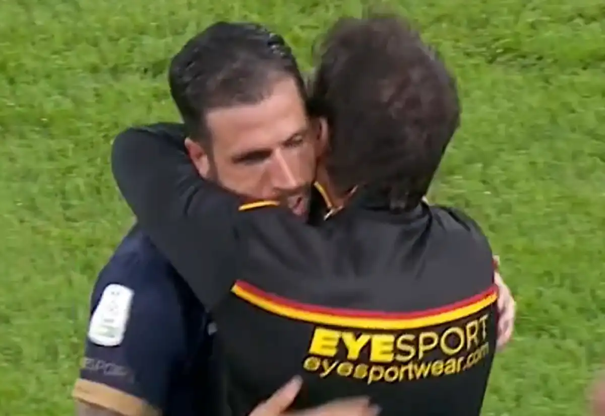 Il Catanzaro è Iemmello. Ancora una volta nel momento cruciale della stagione Pietro Iemmello si prende sulle spalle il Catanzaro e lo risolleva pareggiando la partita con il Bari e facendo ripartire una nuova stagione. E poi l’abbraccio a Caserta per far capire che tutti remano dalla stessa parte e vogliono il bene del Catanzaro.