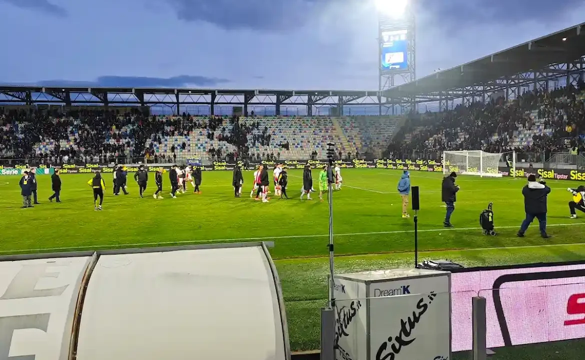 Se il calcio fosse una scienza esatta, o quantomeno uno sport che premia ai punti come la boxe, oggi dallo “Stirpe” il Catanzaro uscirebbe con la cintura di campione. Invece, il tabellino recita un freddo e crudele 2-0 per la capolista Frosinone. Un risultato che definire “bugiardo” è un eufemismo, lo specchio deformante di una gara che le Aquile hanno interpretato con personalità da grande squadra, dominando per lunghi tratti sul piano del gioco e delle idee, prima di essere piegate da un episodio arbitrale decisamente discutibile e dalla legge cinica del gol.