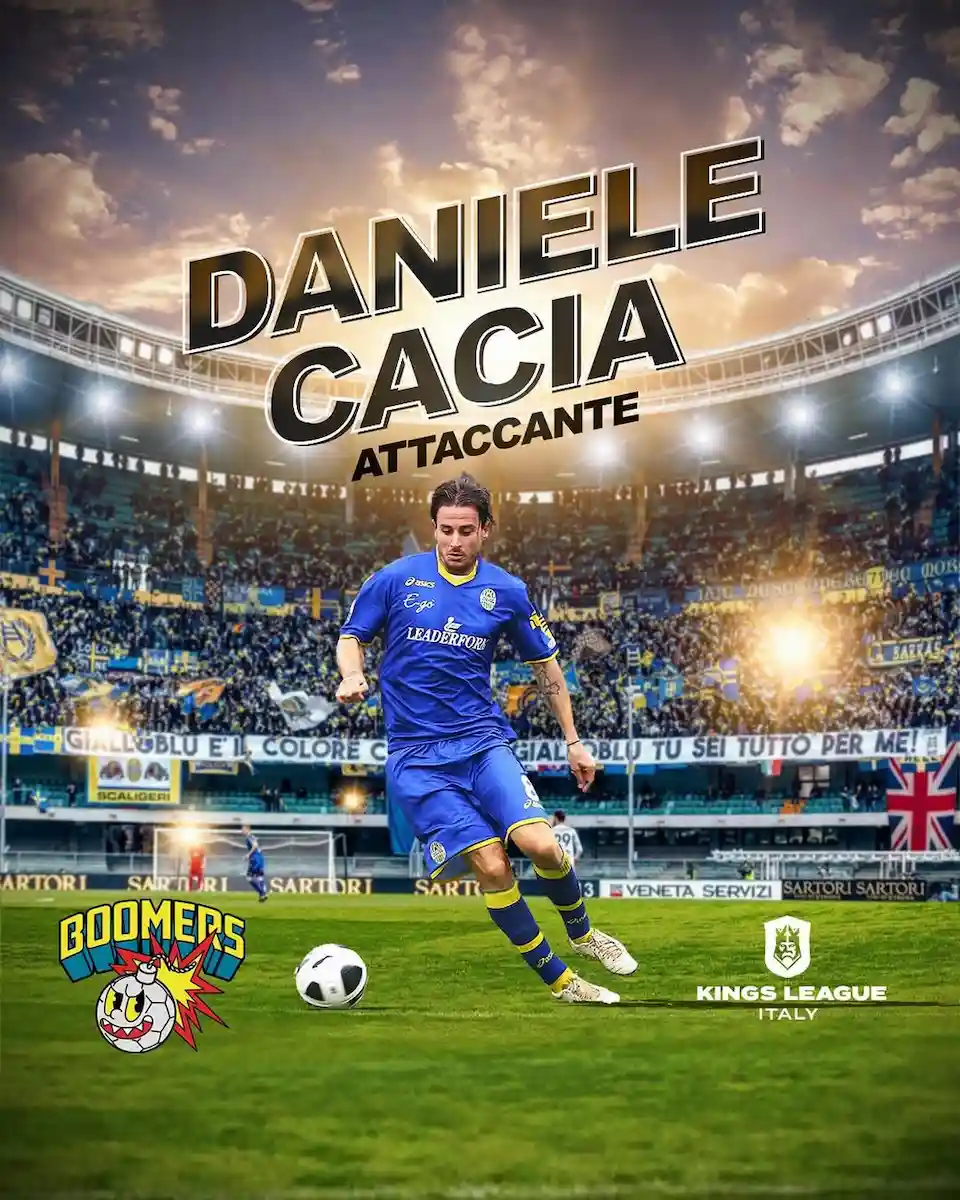 Dopo aver calcato i campi di Serie A e B e aver concluso la carriera nei dilettanti, Daniele Cacia si rituffa nel mondo del calcio, ma questa volta in un contesto completamente diverso. La Kings League Italia, che debutterà nel 2025, è un format ispirato alla Kings League lanciata in Spagna dall’ex difensore del Barcellona Gerard Piqué. La lega combina il calcio tradizionale con dinamiche innovative, coinvolgendo personaggi del mondo sportivo e dello spettacolo per creare una competizione sette contro sette in grado di attirare un vasto pubblico, sia di appassionati che di neofiti.