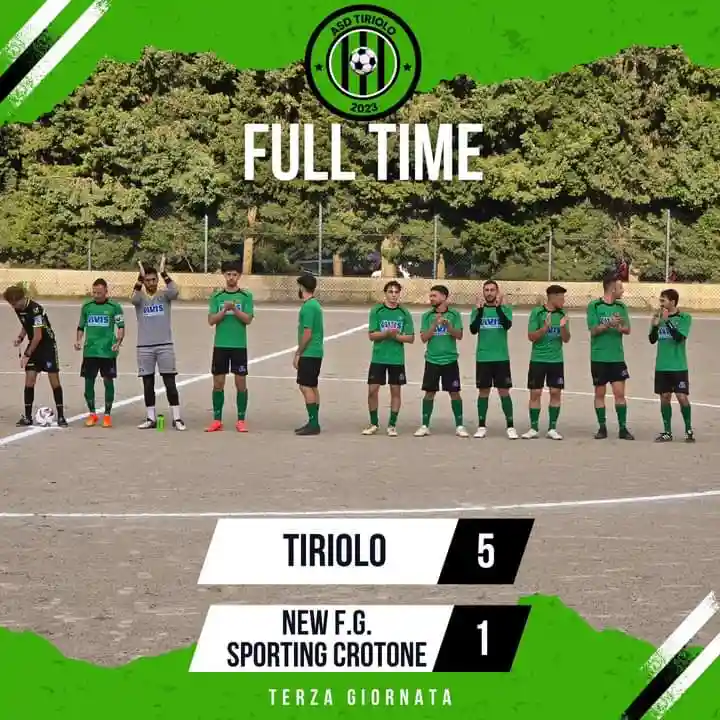 Altra prova memorabile del Tiriolo questo pomeriggio al “Cuture”, a conferma del grande inizio di stagione. Dopo la vittoria sulla Goodfellas in trasferta, ecco la prima vittoria casalinga con il rotondo risultato di 5 a 1 sullo Sporting Crotone. Davanti alla solita straordinaria cornice di pubblico, trascinata dagli encomiabili UT05, il Tiriolo di mister Paone sfodera una prestazione perfetta e rifila la manita ai malcapitati crotonesi.