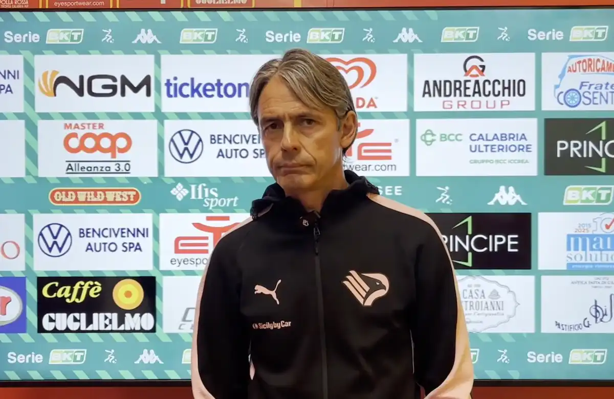 È un Filippo Inzaghi scuro in volto nel post partita di Catanzaro-Palermo: