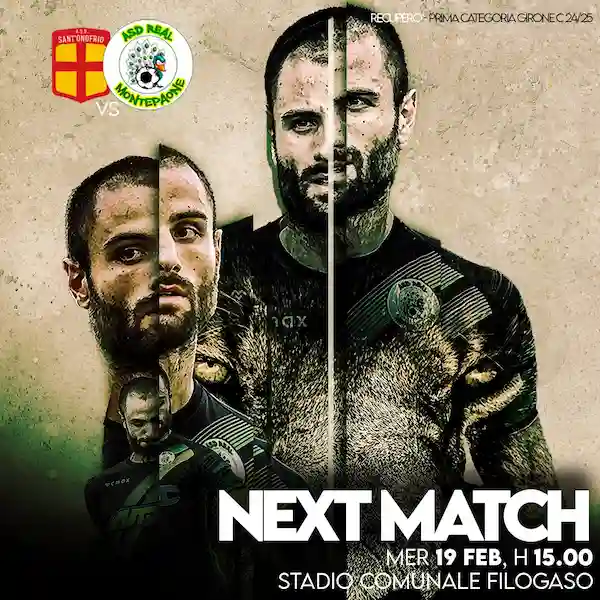 Il Real Montepaone torna subito in campo per un match delicato e decisivo nel recupero contro il Sant’Onofrio, in programma mercoledì 19 febbraio alle 15:00 allo Stadio Comunale di Filogaso. La partita riprenderà dal secondo tempo, dopo che il match era stato interrotto per impraticabilità di campo con il punteggio di 1-0 in favore degli avversari.