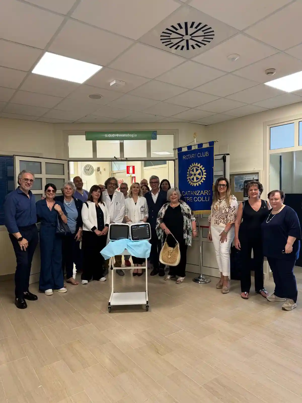 Il Rotary Club Catanzaro Tre Colli ha donato due monitor per il monitoraggio remoto delle condizioni cliniche dei pazienti al reparto di Ematologia dell’Azienda ospedaliero-universitaria “Renato Dulbecco”, presidio Pugliese-Ciaccio, di Catanzaro, diretto dal Prof. Marco Rossi, alla presenza del Presidente del Rotary Club Catanzaro Tre Colli Giuseppe Caputo, accompagnato da numerosi soci, a testimonianza dell’impegno collettivo del Club nel supporto alla sanità del territorio.